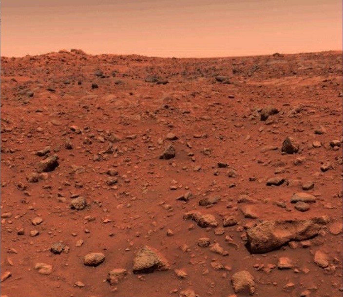The first color image taken from the Martian surface, by NASA's Viking 1 lander on July 21, 1976, revealed a pink sky.